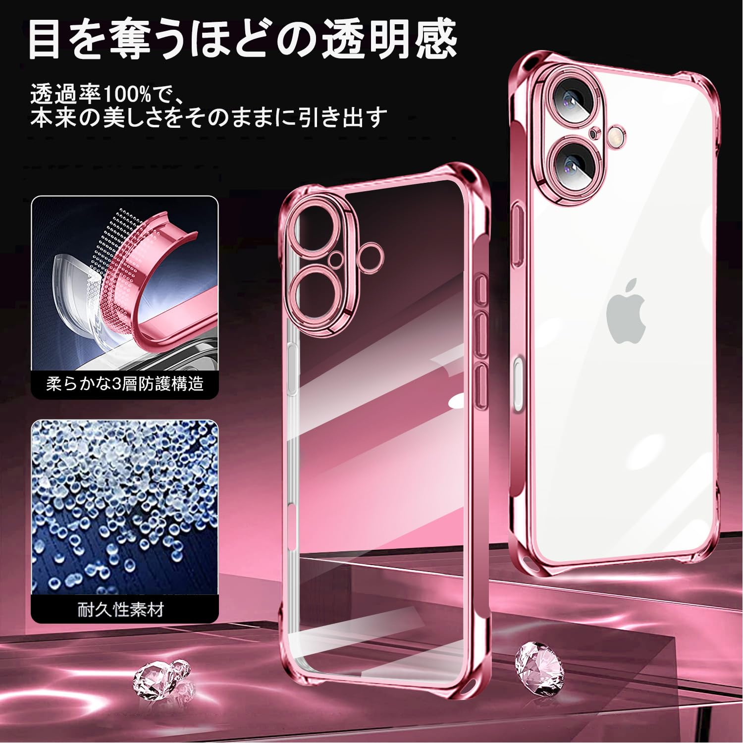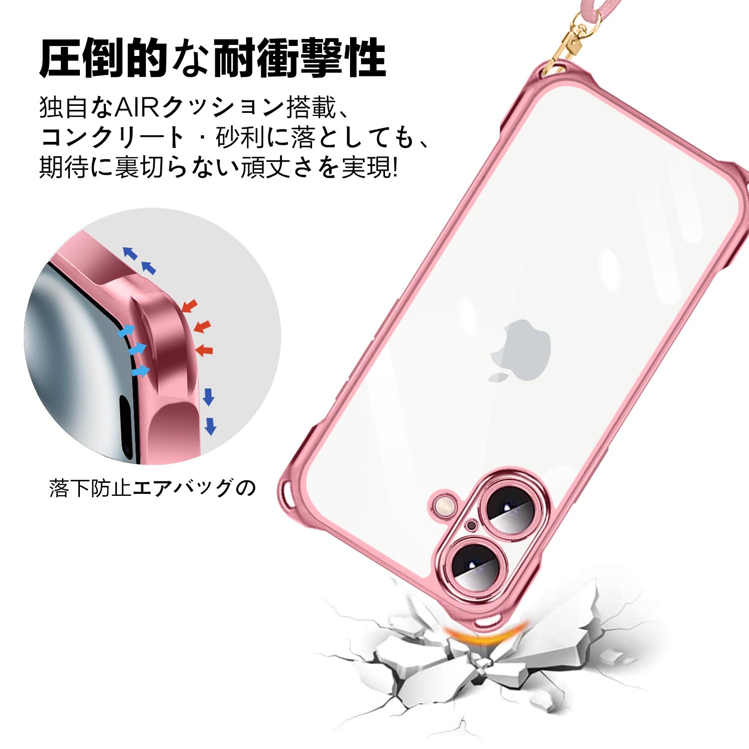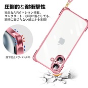 iPhone16 用 スマホケース アイフォン16 カバー 肩掛け 斜めかけ 縄掛けケース 透明 TPU 薄型 軽量 耐衝撃 携帯ケース 紐付き 織りストラップ付き ネックストラップ ショルダー ケース 縦/横 2WAY 長さ調整可能 取り外し可能 落下防止 紛失防止 ワイヤレス充電対応 (ローズゴールド)