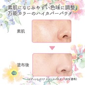 【使用方法】○メイク下地の後やファンデーションの後、付属のパフにパウダーを適量含ませ、軽くすべらせるようにお肌にのばしてください。 ○小鼻部分はパフを2つに折ってのばすと、塗り残しを防げます。 ○メイク直し時にご使用いただく場合は、余分な皮脂をティッシュ等でおさえてからお使いいただくと綺麗に仕上がります。 ○本品を落とすときは、クレンジングをご使用ください。単品使用の場合は洗顔料でも落とせます。
