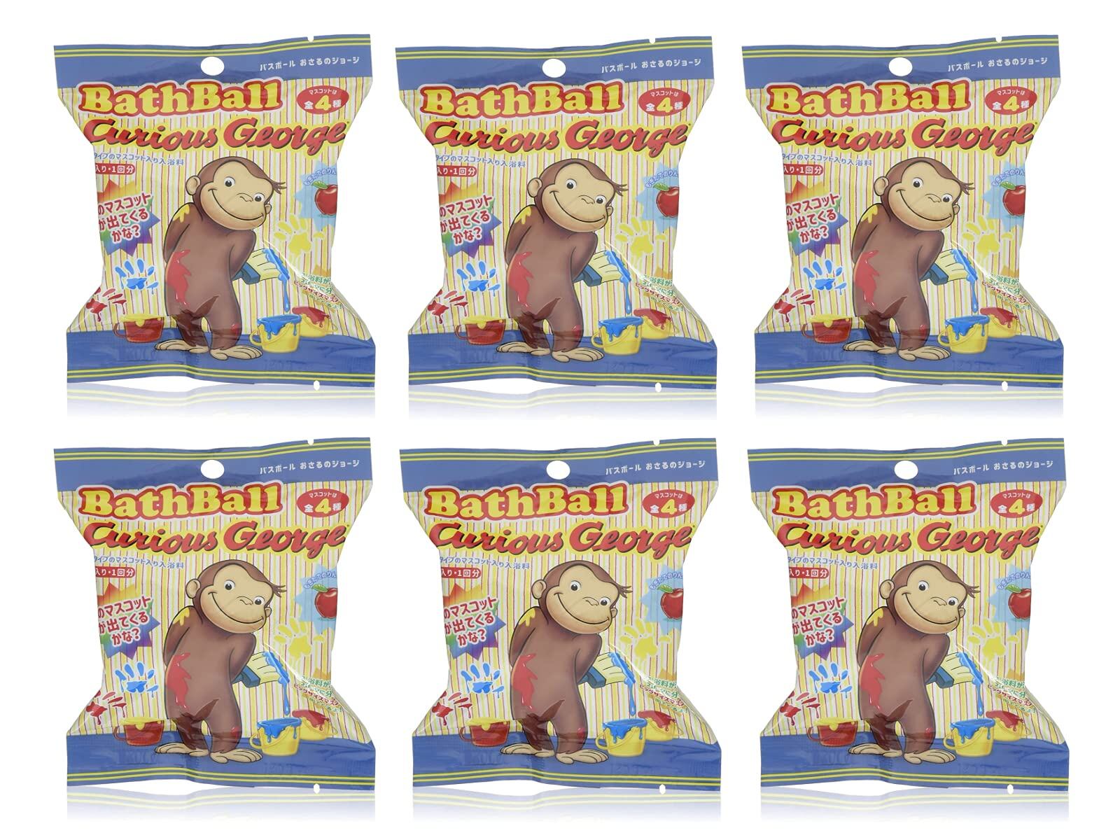 【6個セット + 泡立てネット付】ノルコーポレーション おさるのジョージバスボール2 マスコット入り りんごの香り 60g YUN-4-01 入浴剤【バスタイムにあって便利な泡立てネット付】 | kor Cat*