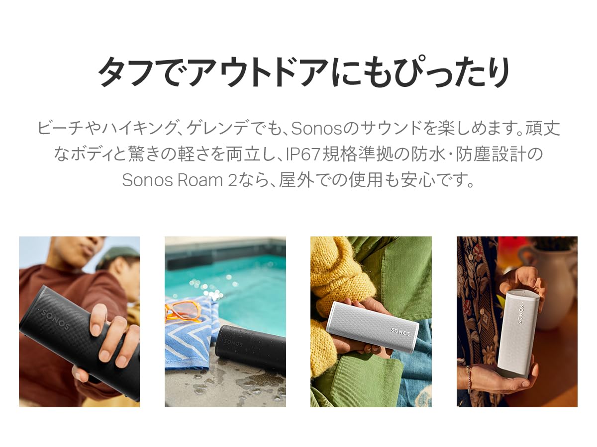 Sonos Roam2 スマートスピーカー 【VGP2025 Bluetoothスピーカー(2万円以上3万円未満)部門 金賞】Bluetooth5.2 Wi-Fi Apple AirPlay 2 防水・防塵設計 ステレオペア 最長10時間連続再生 オリーブ