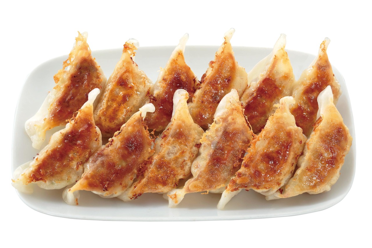 たまねぎ(国産)、食肉〔豚肉(国産)、鶏肉〕、豚脂、ラード、粒状大豆たん白、パン粉、おろしにんにく、みそ、砂糖、しょうゆ、食塩、おろししょうが、ごま油、こしょう、皮〔小麦粉(国内製造)、米粉、糖類(麦芽糖、ぶどう糖)、みりん、食塩〕/加工デンプン、調味料(アミノ酸等)、ソルビトール、添付タレ(しょうゆ、醸造酢、果糖ブドウ糖液等、植物油脂、食塩、砂糖/調味料(アミノ酸等)、(一部に小麦・乳成分・鶏肉・豚肉・大豆・ごまを含む)