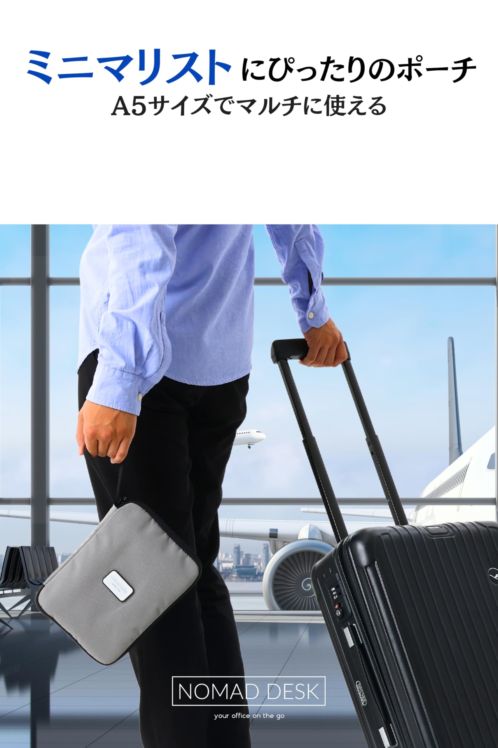 NOMAD DESK A5 薄型ポーチ 見開き式 iPad mini 8インチ タブレットケース ガジェットポーチ トラベルポーチ 撥水 マルチ パスポートケース バッグインバッグ フリーアドレス バッグ 大容量収納 モノマガジン掲載 NOMAD POUCH ROVER MINIMALIST ノマドデスク