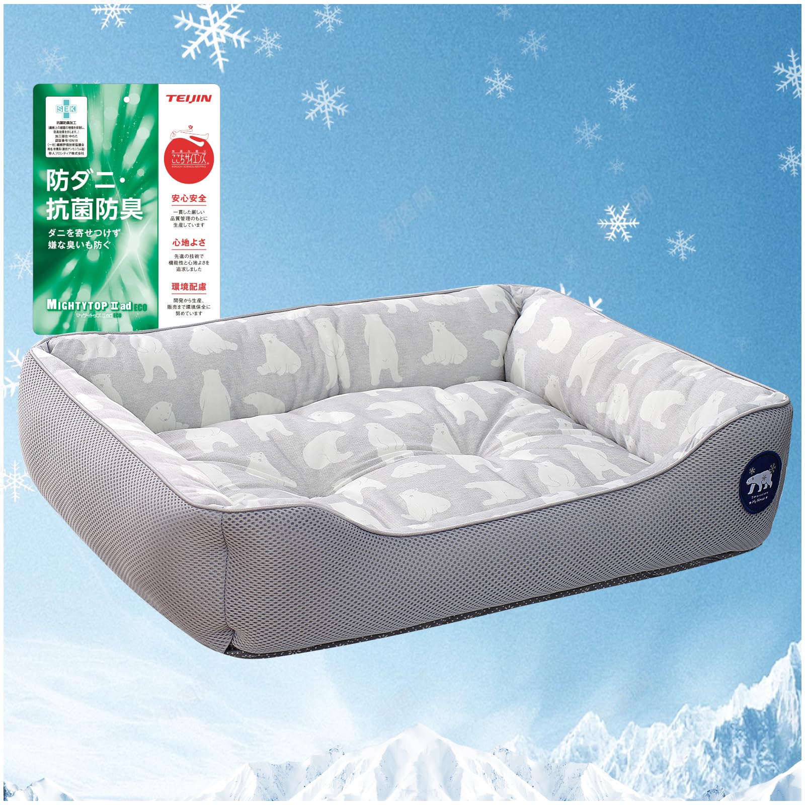 【光触媒×帝人中綿のWバリアで守る! ペットベッド 夏の革新抗菌システム】犬 ベッドの帝人TEIJIN中綿には抗菌防臭加工を施し、細菌の繁殖を効果的に抑制します。接触面の冷感生地には光触媒加工を採用しています。昼間の陽光や夜間の照明をエネルギーに変え、付着した有機物を酸化分解する自浄機能で、抗菌・防汚・消臭を実現します。高温多湿の夏場でも、内側から外側まで二重の抗菌バリアが、ペットの健やかな眠りを清潔に守ります。まさに高級ペット用品が備えるべき品質と性能で、大切なご家族の健康を紡ぎます。梅雨や夏のムシムシ時期でも、二重バリアでペットの肌を守ります。