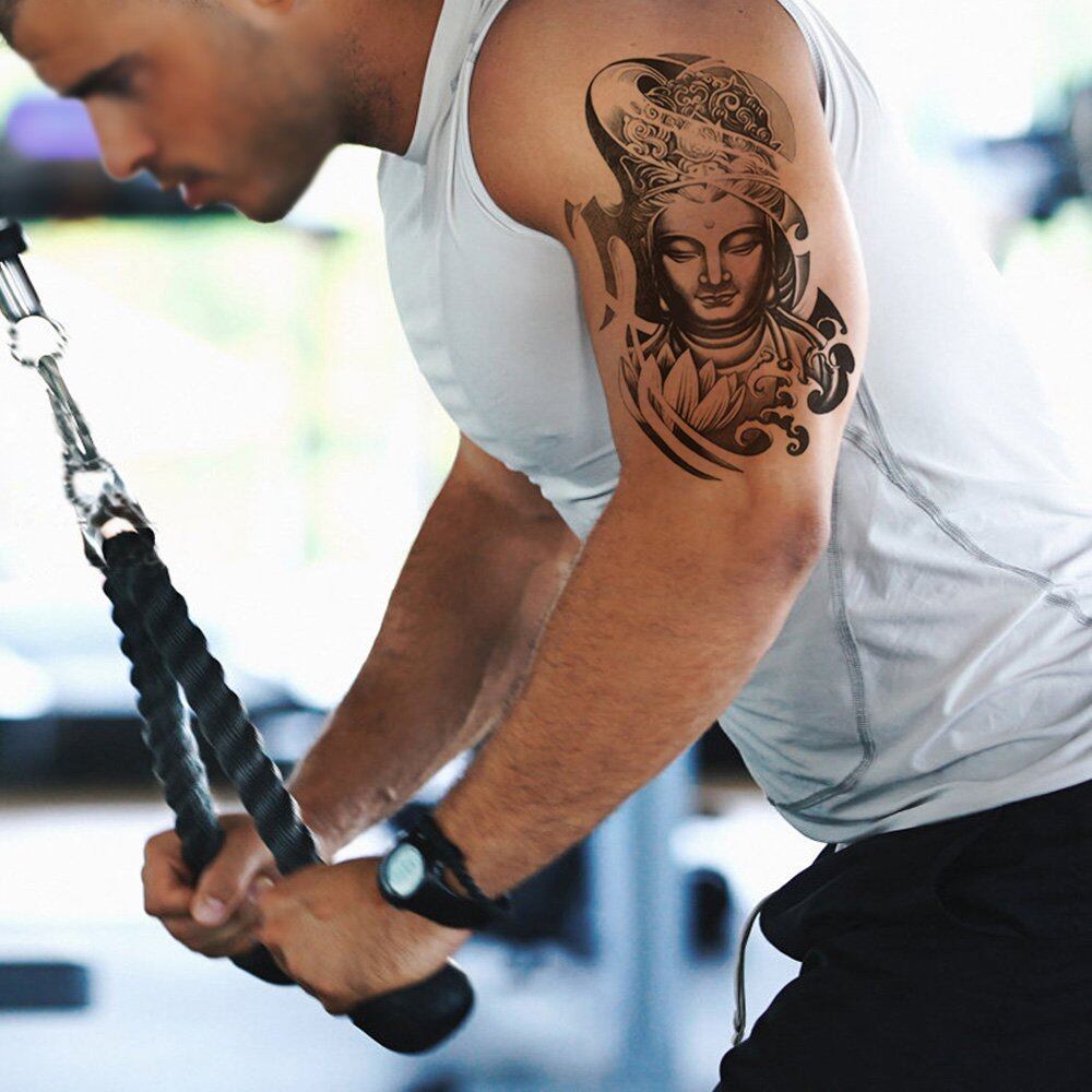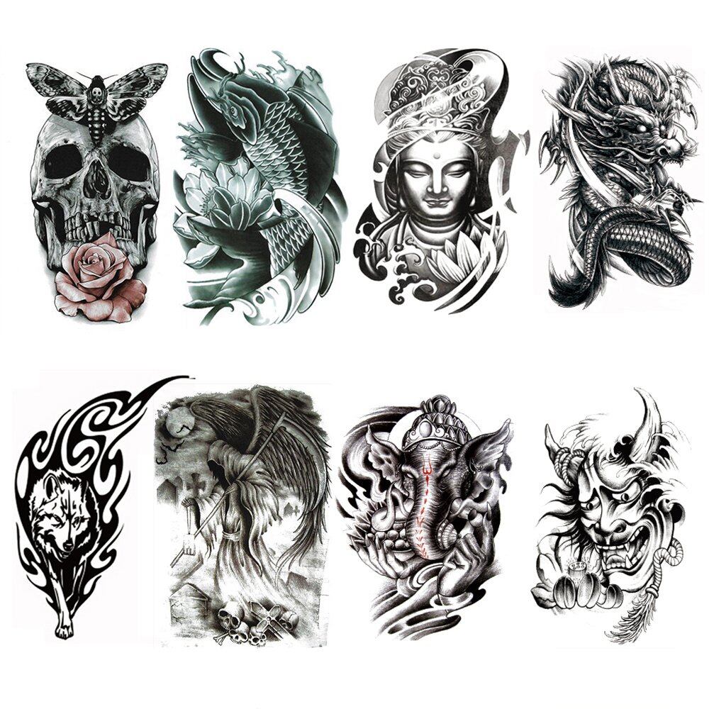 Yesallwas タトゥーシール リアル 大判 和彫り 8枚セット スカル ドクロ 黒 薔薇 蝶、黒 鯉、仏 仏像、 龍 ドラゴン、トライバル 狼(オオカミ)、般若 お面 、死神 タトゥーステッカー ボディーシール メンズ 入れ墨 シール 刺青シール 防水 15X21CM tattoo sticker (A.8枚セット) | kor Cat*