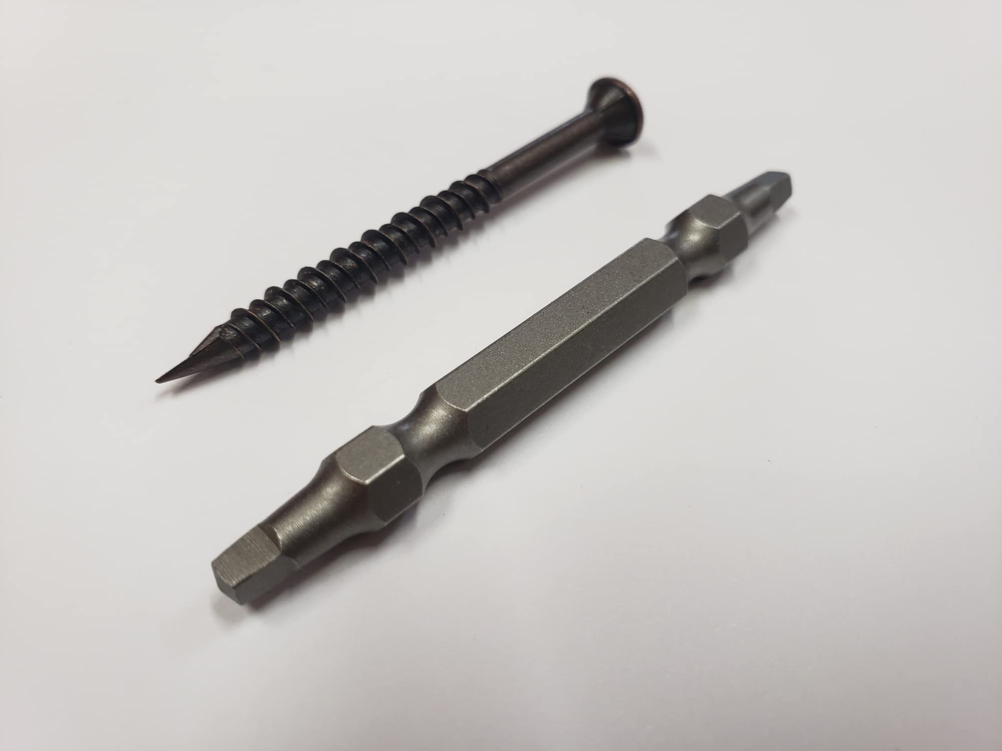 プロにも大好評!一気通貫シリーズにブラウン色が登場!! フレキシブル頭ハイローネジ仕様 ビス先端特殊加工で推進力バツグン! SUS410ステンレス鋼製なので屋外の使用でも錆びにくく、 Φ4.5mmタイプかつ先端特殊加工で抜群の進入力を誇ります! 下穴なしでも打ち込めるため、施工時間短縮も望めます。 1箱(約100本入) ※スクエアビット(#2) 1本付属 カラー:ブラウン色 ビスサイズ:Φ4.5x65mm 最適な下穴ドリル径:3.5mm