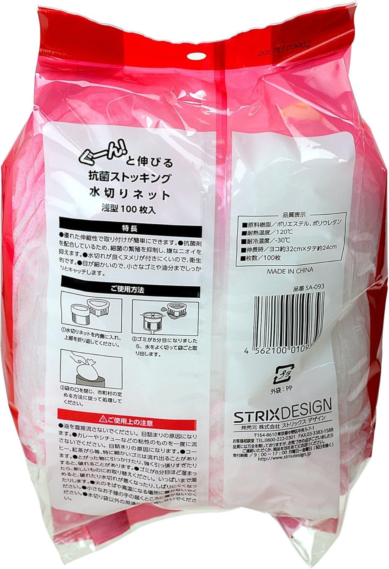 【 限定】 ストリックスデザイン ストッキング 水切りネット 浅型 抗菌 300枚 (100枚×3個セット) 約32×24cm ぐーん! と伸びて取り付け簡単 排水口 排水溝 ネット 大容量 SA-093