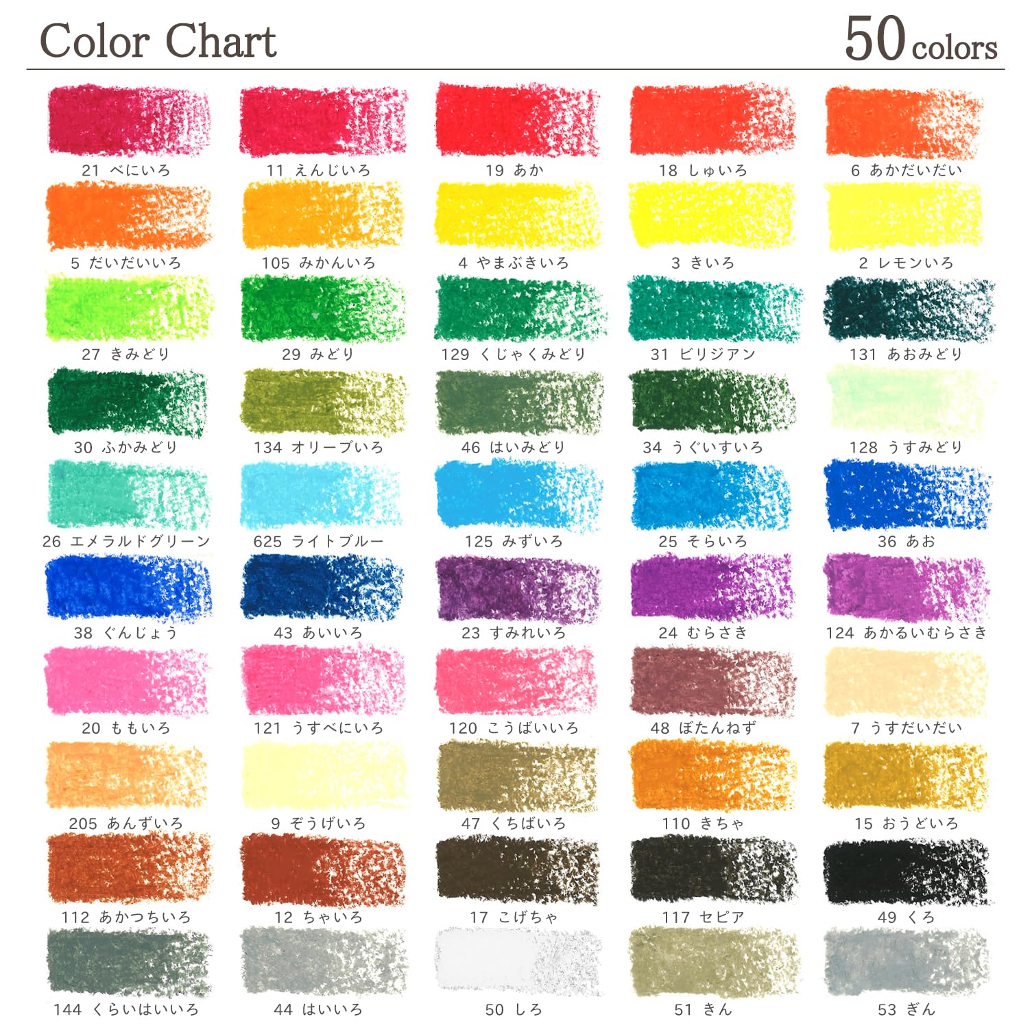 【特長1】高級顔料を使用し、50色の豊富なカラー展開で様々な表現をする事ができます。