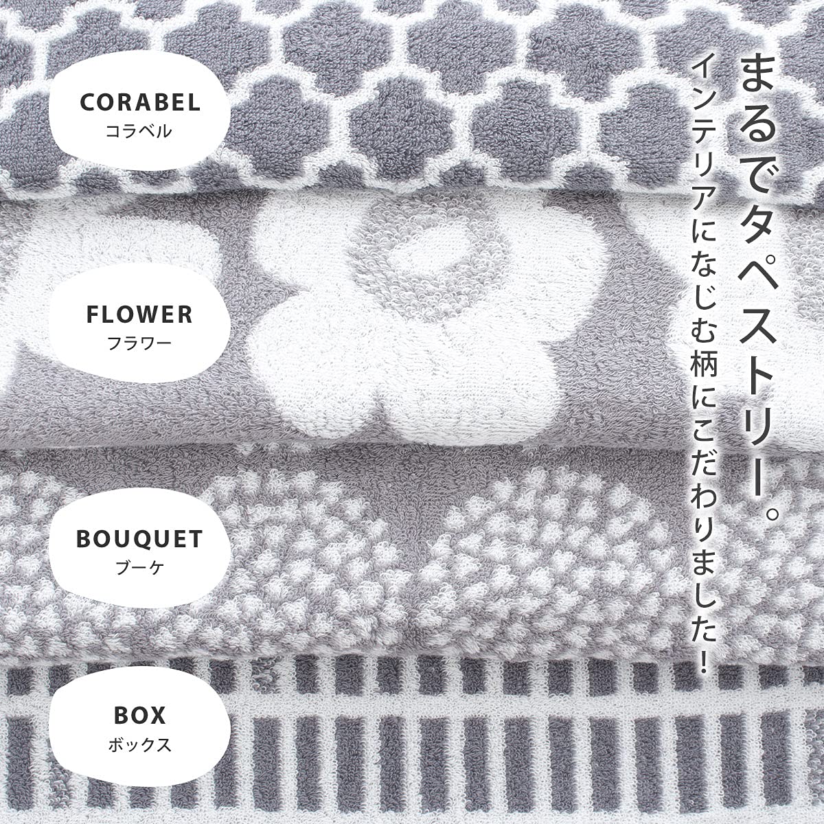 【収納時に統一感のあるデザイン】収納時にも統一感のある4柄。家族・夫婦などタオルを使い分けたいシーンでも、柄を合わせても統一感がでるように拘りました。