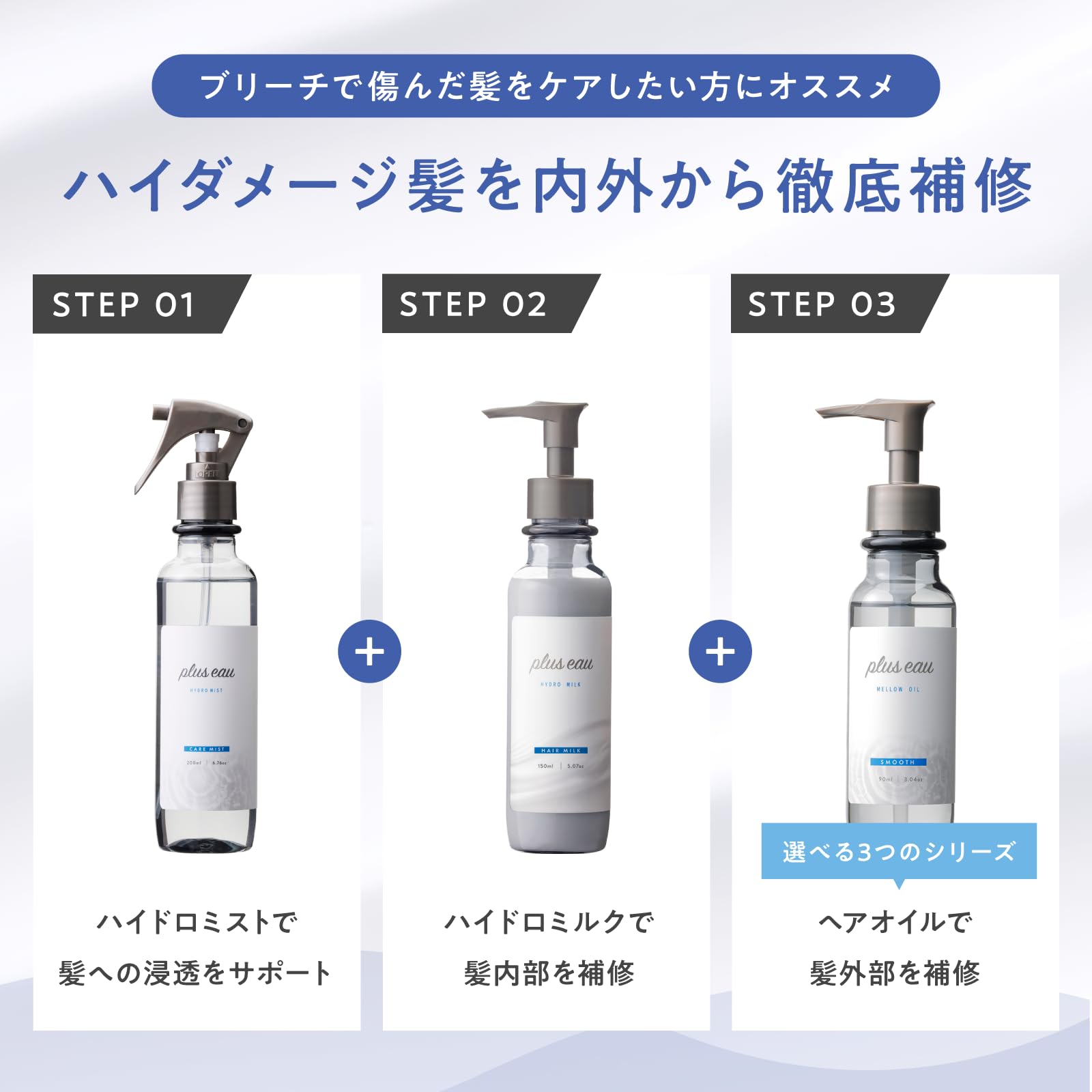 ダメージレベルに合わせて「プリュスオー ハイドロミスト」や「プリュスオー ヘアオイルシリーズ」と重ね使いしてもお使いいただけます。