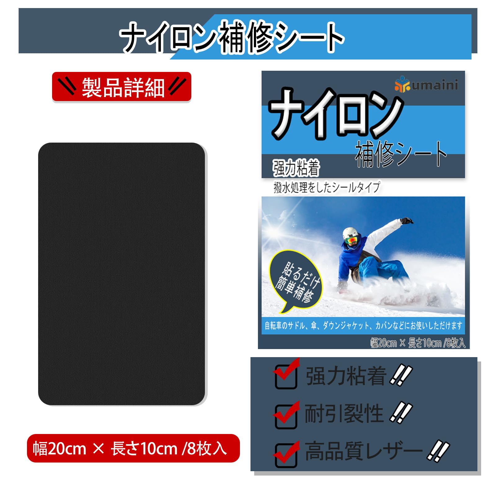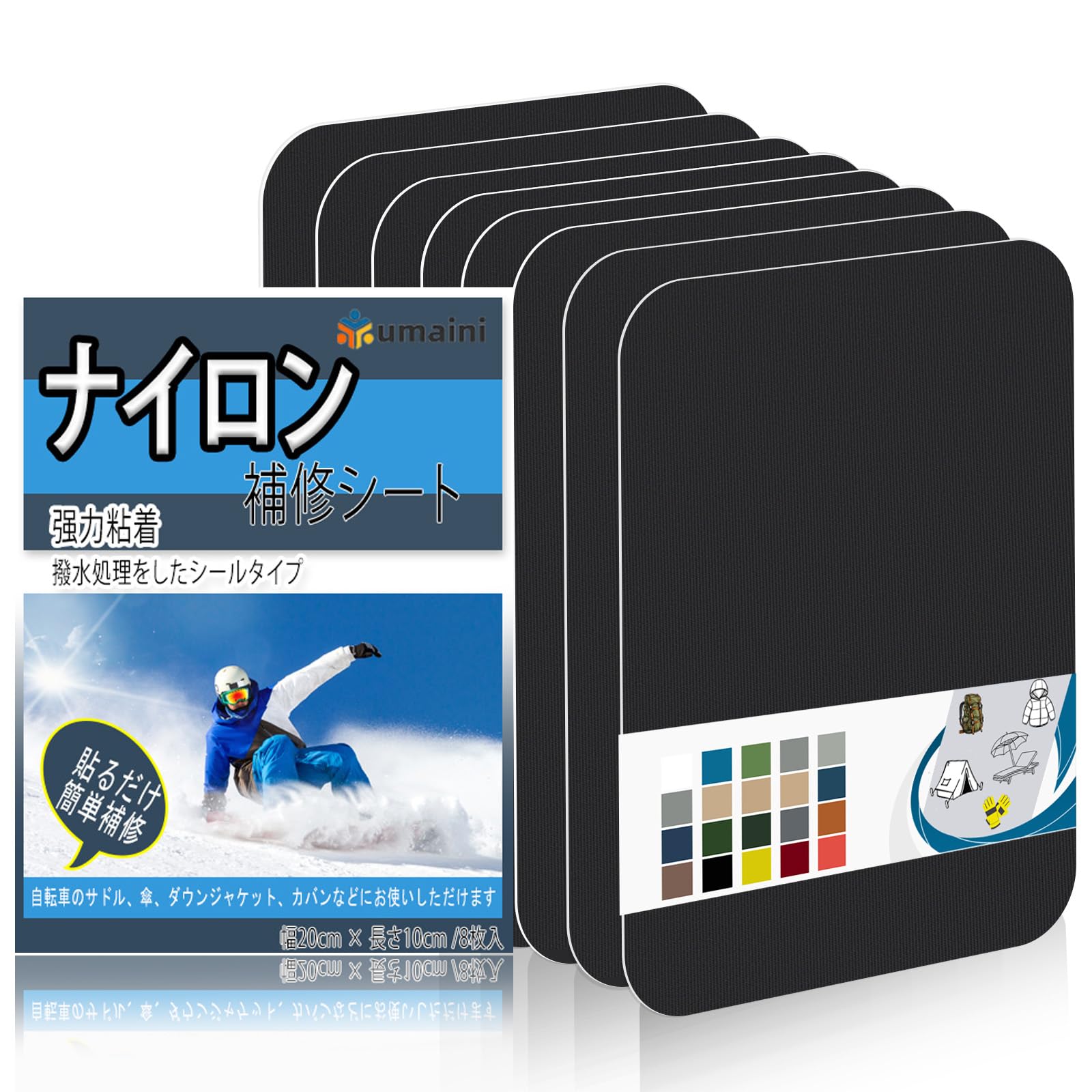 ナイロン補修シート 20x10cm 8枚 テント補修テープ バイク シート 補修 粘着ナイロン織物テープアウトドアキャンプ装備 傘、ダウンジャケット、寝袋、リュックパッチキット ブラック