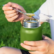 【密閉性が抜群】フードジャーのフタの溝に水滴が流れるため液だれもしづらく、振っても漏れはありませんでした。安定感のあるデザインのため、漏れの心配なく持ち運べます。