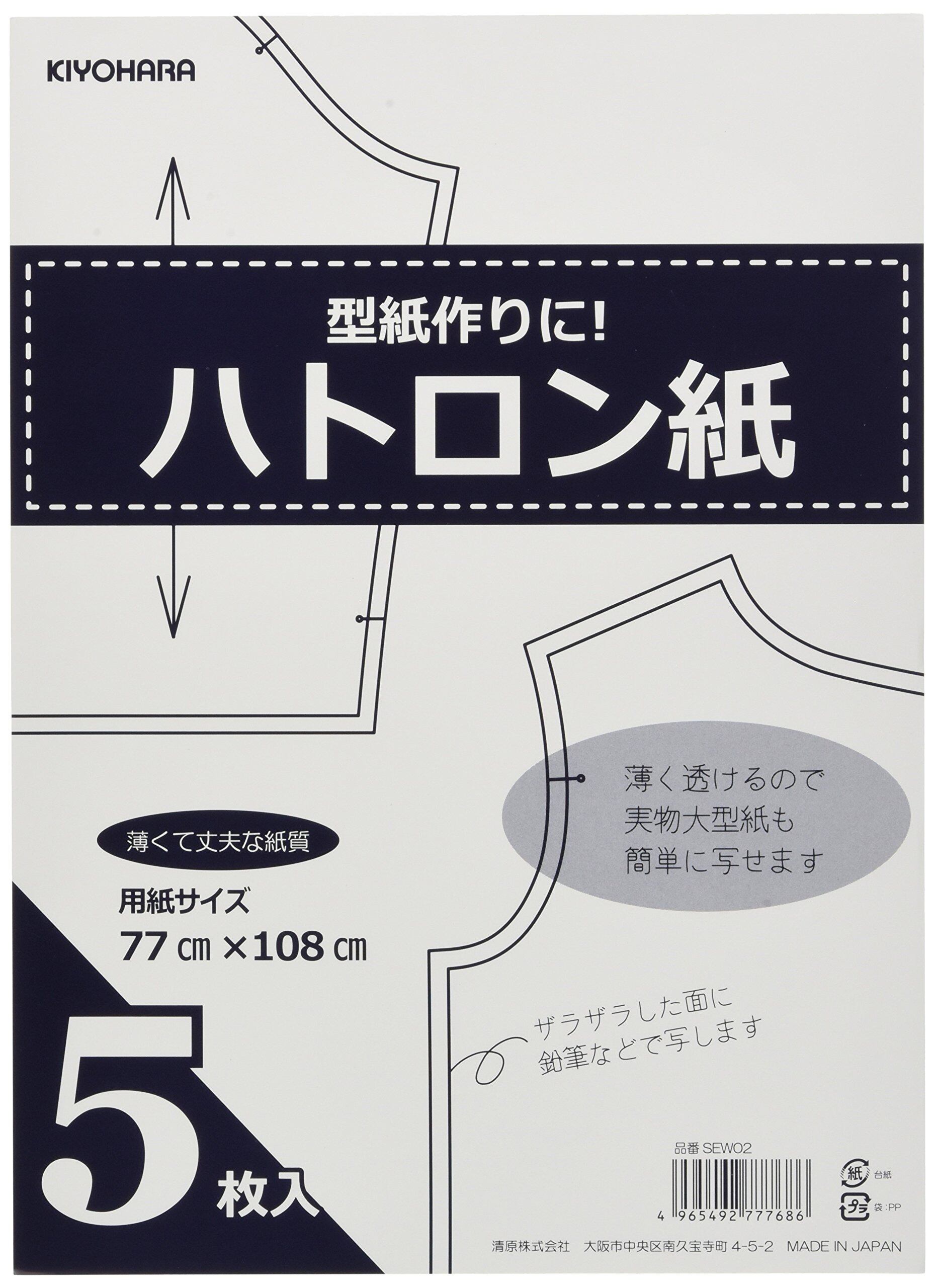 型紙作りの必需品。薄くて丈夫なハトロン紙です。透けるので、実物大型紙も簡単に写せます。