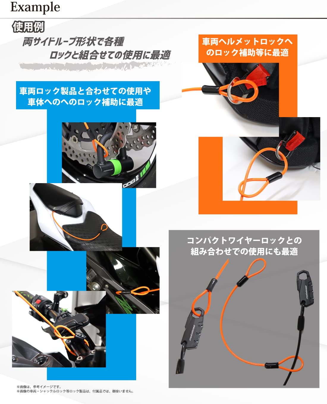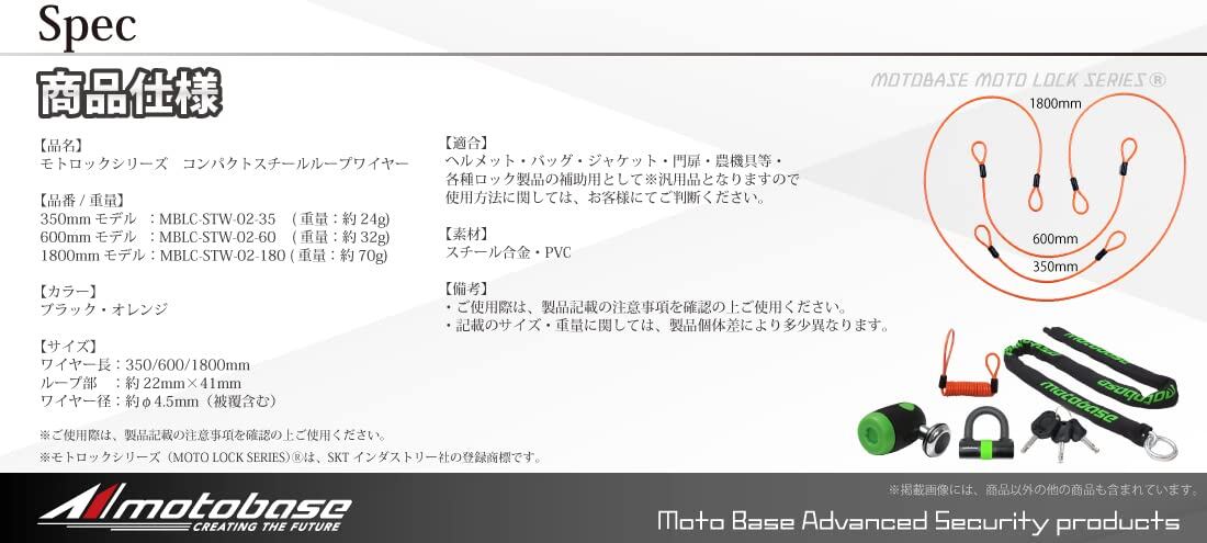 モトベース(MOTO BASE)盗難防止用品 モトロックシリーズ コンパクト ループワイヤー(φ4.5) 長さ:1800mm/オレンジ|MBLC-STW-02-180OR