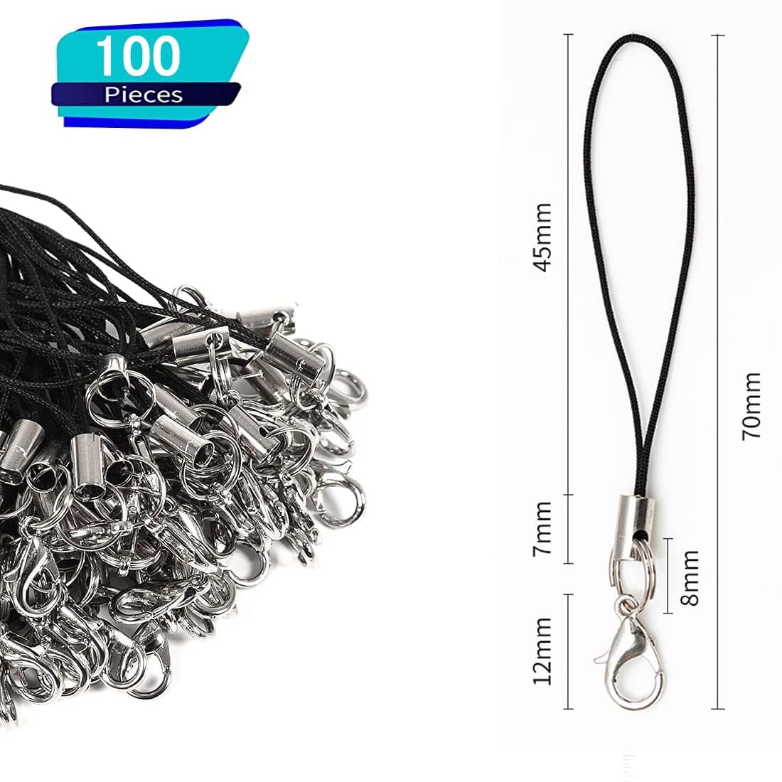 【 パッケージ内容】100本。 カラー:紐:ブラック、金具:シルバー。