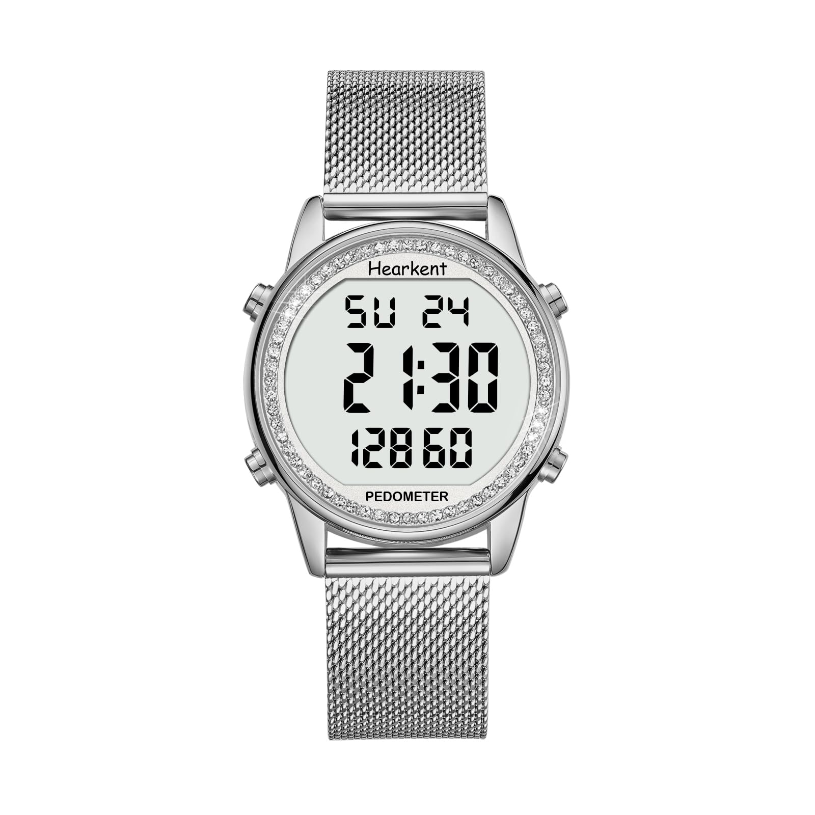 Hearkent レディース歩数計ウォッチ、防水、バックライト、歩数、走行距離、カロリー、カウントダウン、ストップウォッチ、アラーム、時間ごとのリマインダー、大型デジタルディスプレイ、無制限に調節可能なストラップ