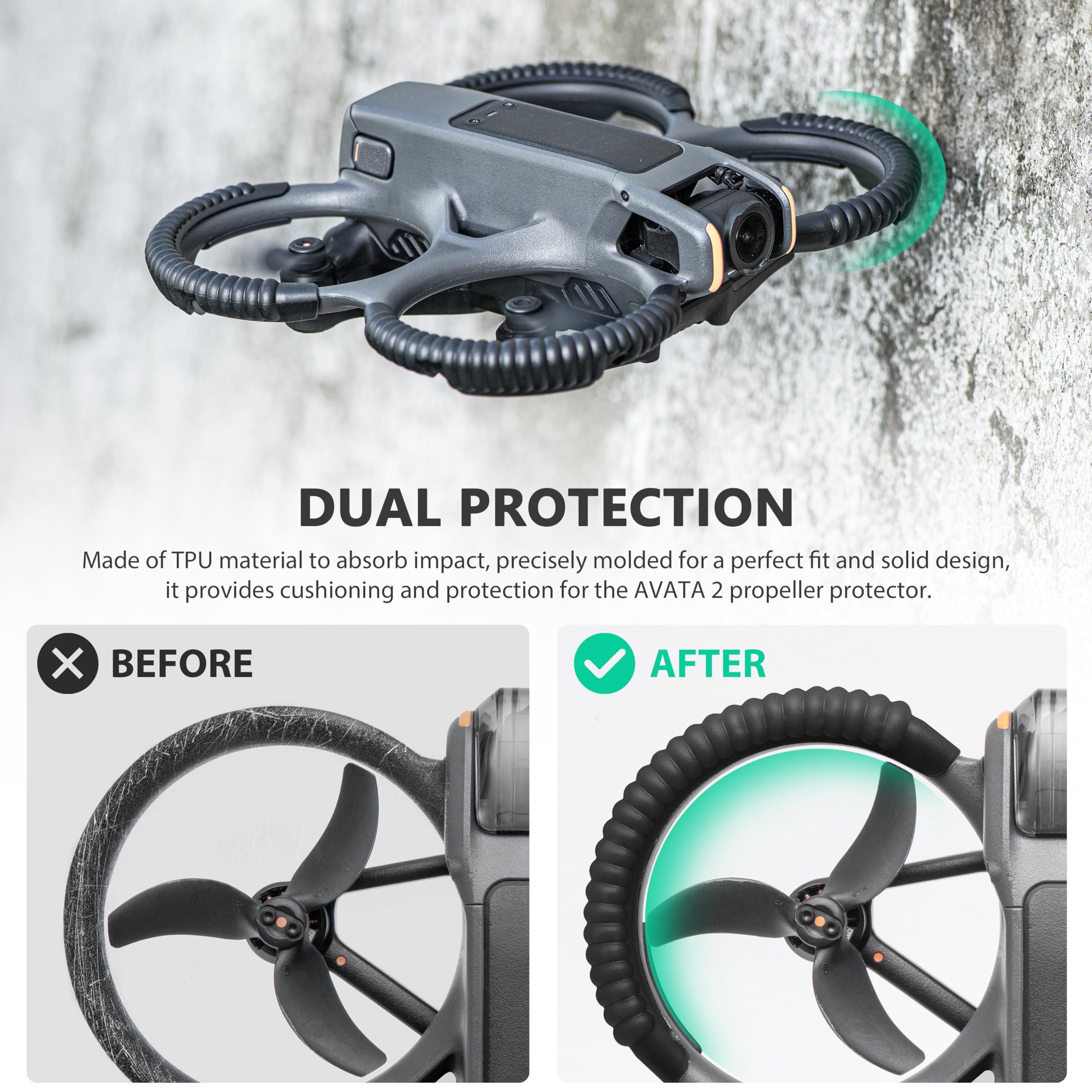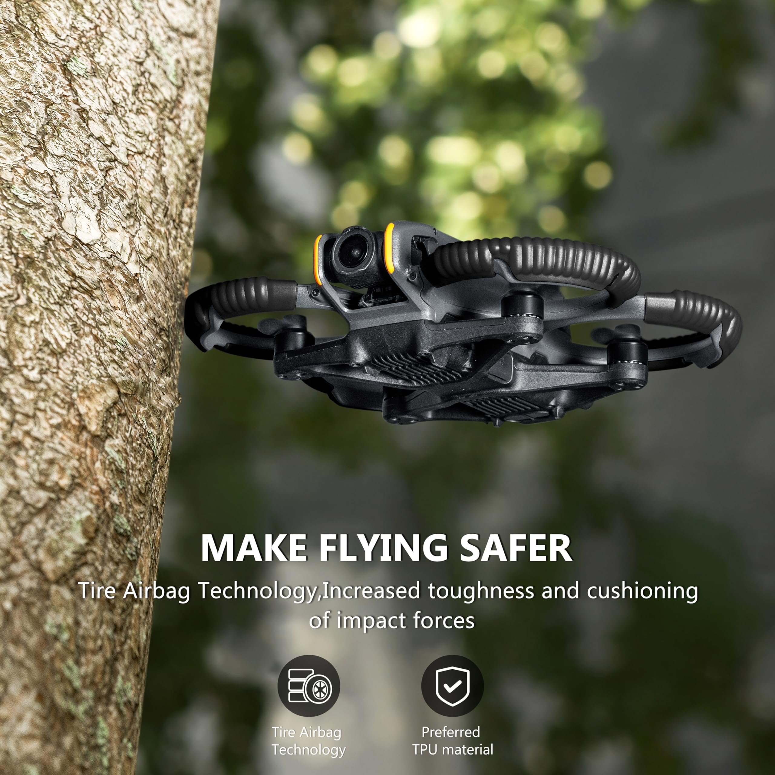 軽量設計:高い強度と靭性を持つ高品質のTPU素材を使用し、重量はわずか48.9g。軽量設計のため、AVATA 2に余分な負担をかけることはなく、飛行中にぐらついたり、落下したりすることもありません。