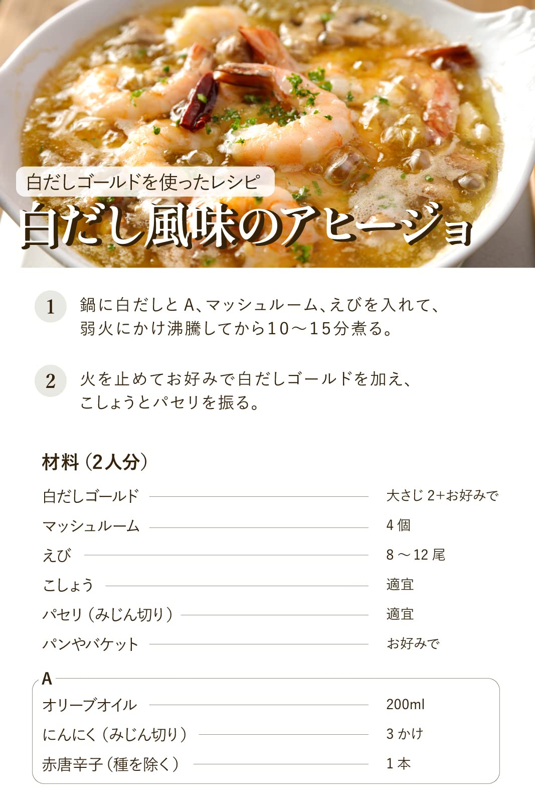 【淡色で上品な風味の白だし】白だしゴールドは香り高く味わい豊かに、だしの風味にさらに磨きをかけました。 淡色仕上げの上品な風味の白だしです。
