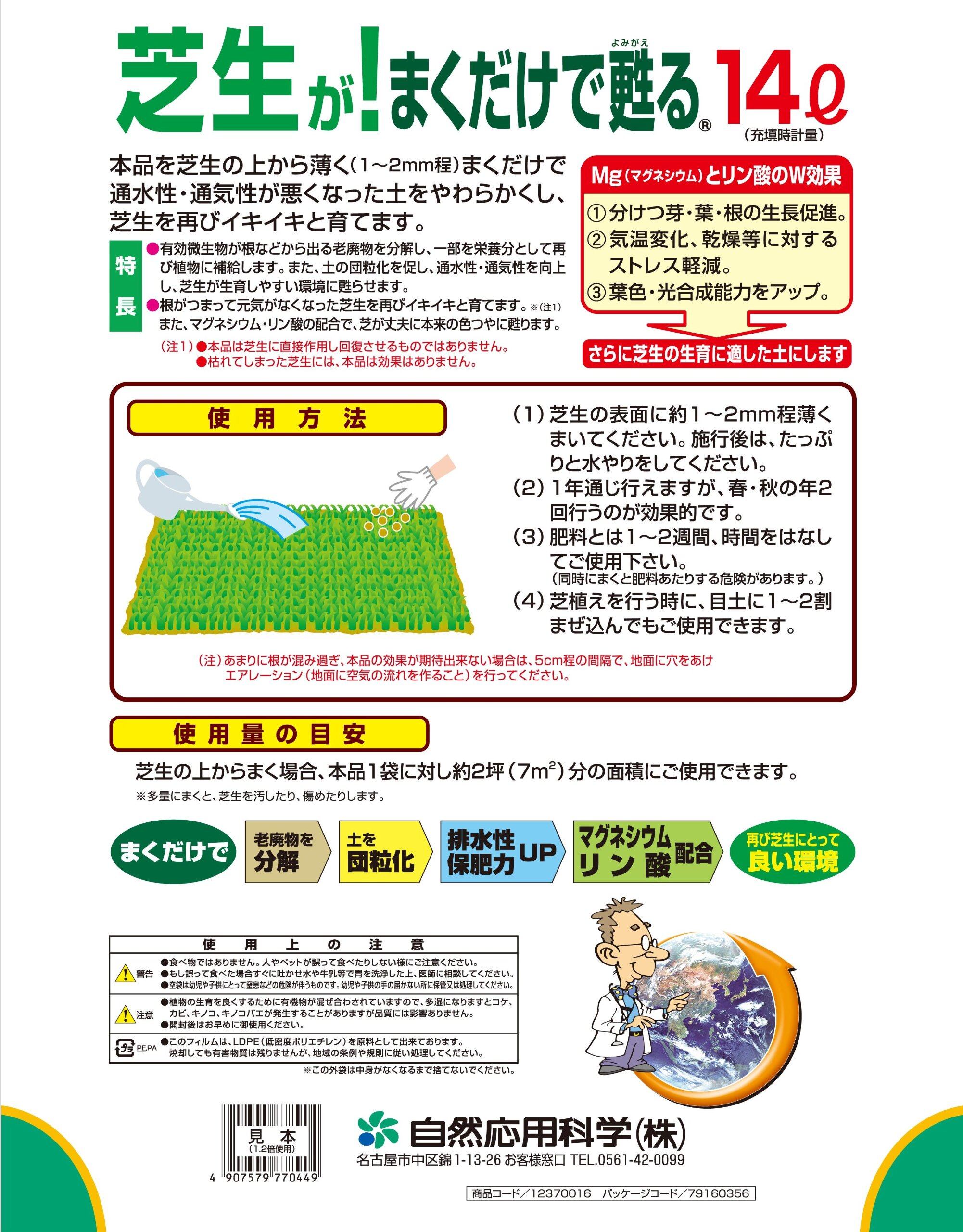自然応用科学 芝生が! まくだけで甦る 土のリサイクル材 14L