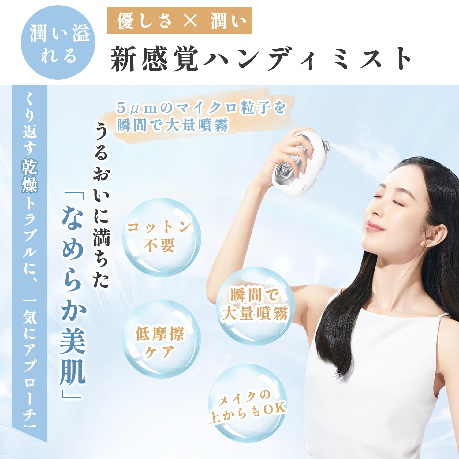 「夏こそ要注意!」肌の水分が逃げやすい季節 ◎従来のスチーマーとは決別! ジメジメした蒸れゼロのハンディミストが登場!大量のきめ細かいミストで浸透率が抜群!いつでもどこ…
