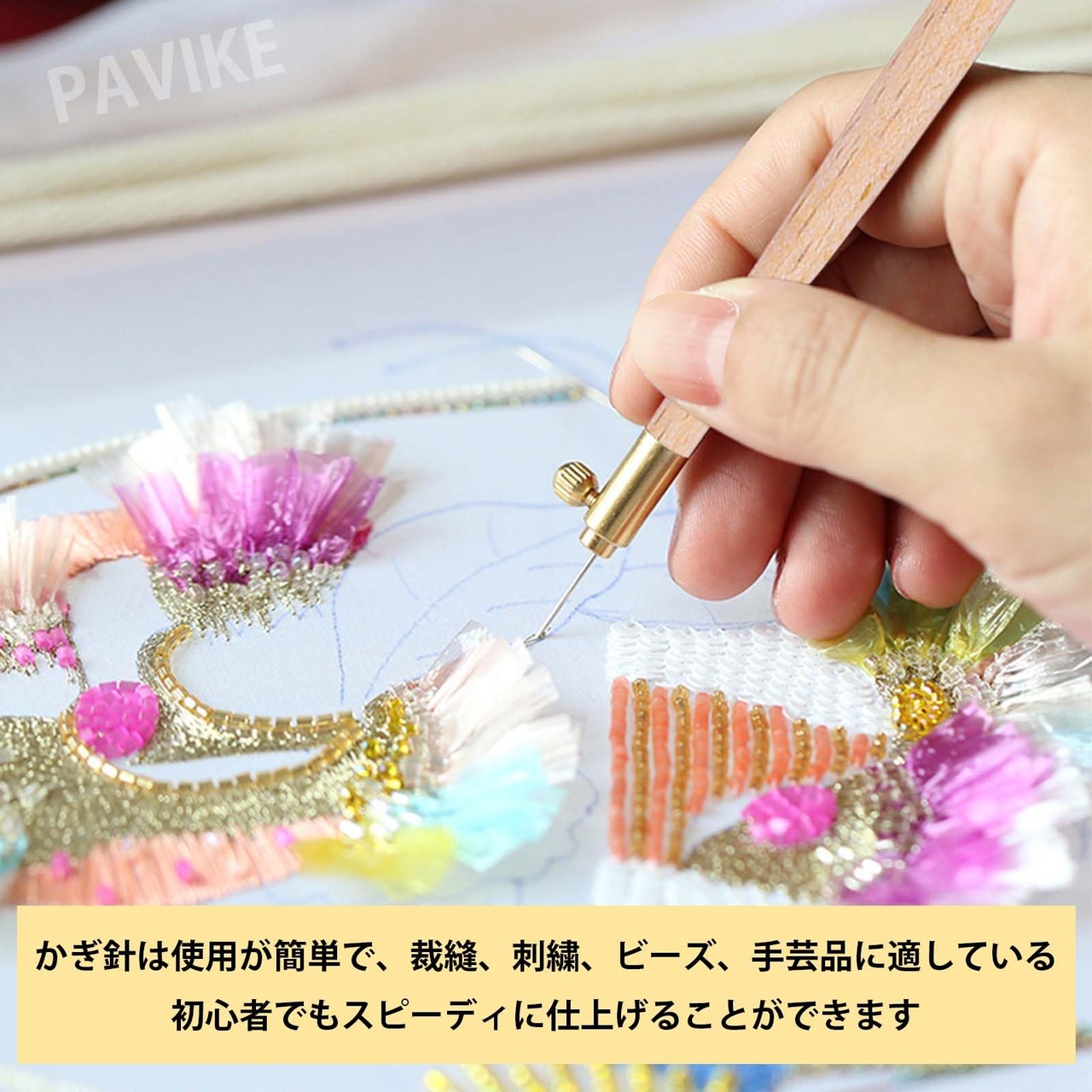 PAVIKE 編み刺繍ビーズかぎ針 3本セット 刺繍ビーズかぎ針 ニードルペン 刺繍ペンキット 刺繍ニードルパンチ パンチニードル キット調整可能フリーステッチ 糸通し付き DIY 握りやすい ハンドメイド 毛糸用 手芸用 裁縫道具 編み物用品