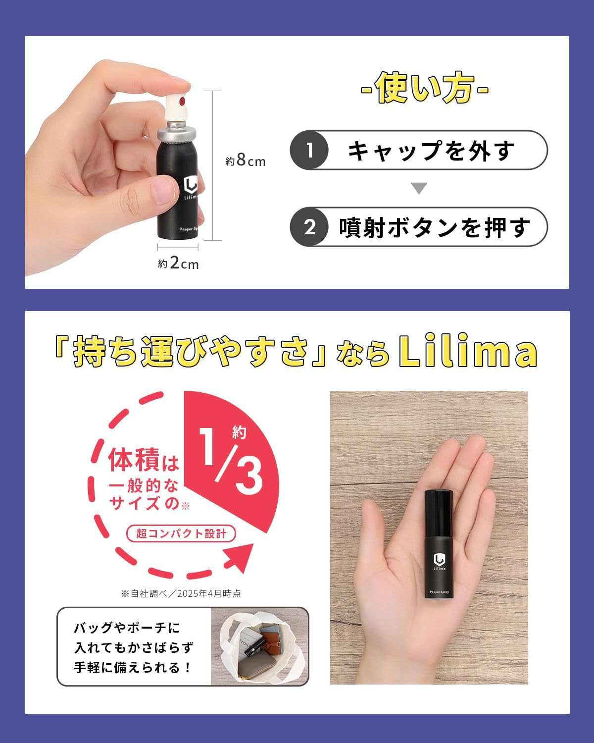 ✨【抜群の飛距離】他社平均の約1/3の体積ながら、2~5m先まで届く強力噴射。夜道の防犯スプレーや緊急時の催涙スプレーとして十分な距離を保ちながら自己防衛が可能です。(主要他社製品との比較・2025年4月時点自社調べ)