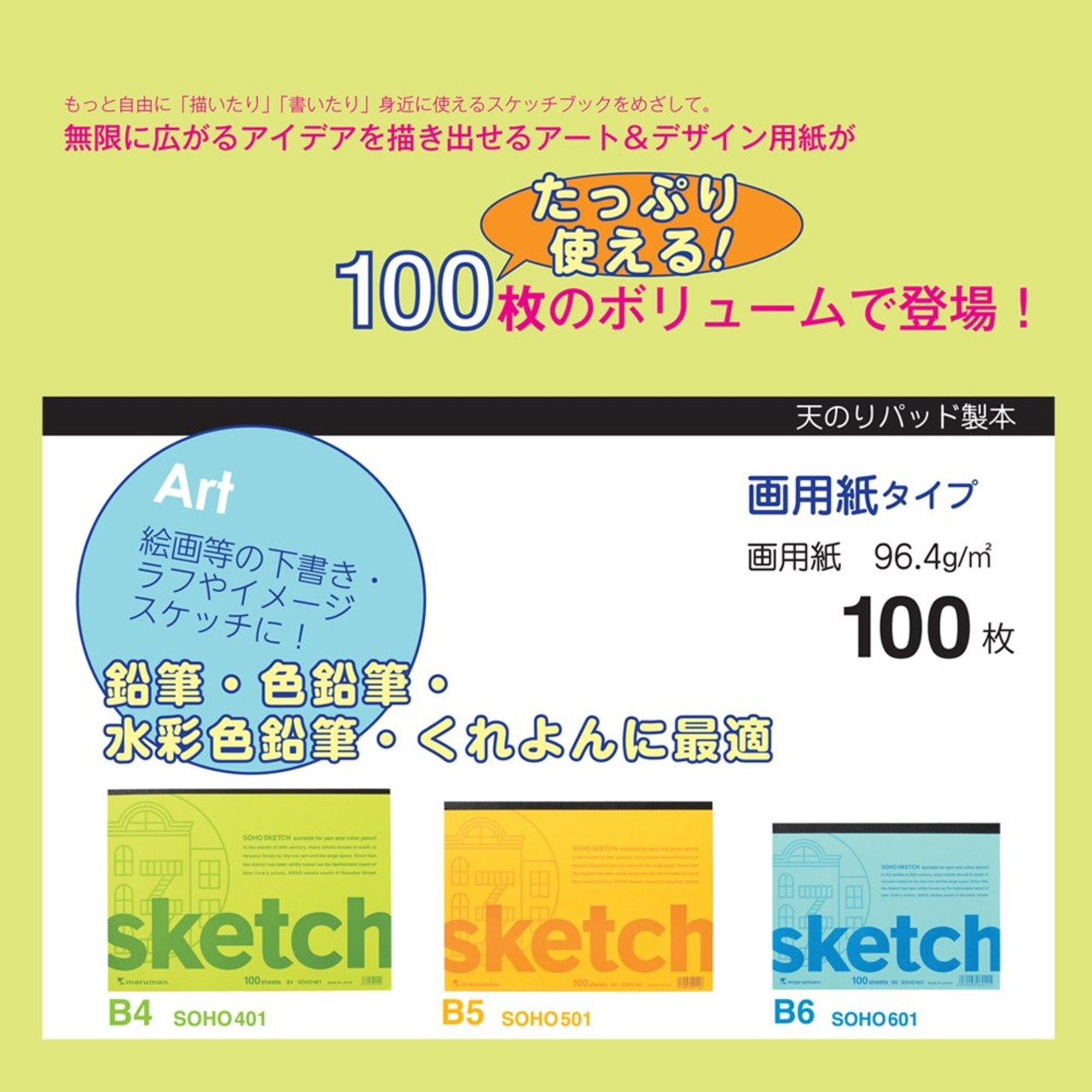 画用紙 「スケッチパッド SOHO B6 画用紙 薄口 中性紙 96.5g/平方メートル」 maruman マルマン