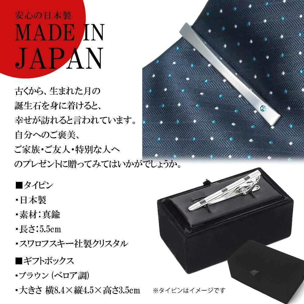 [ギフト用BOX付き] 日本製 誕生石 タイピン (スワロフスキー社製クリスタル) ネクタイピン