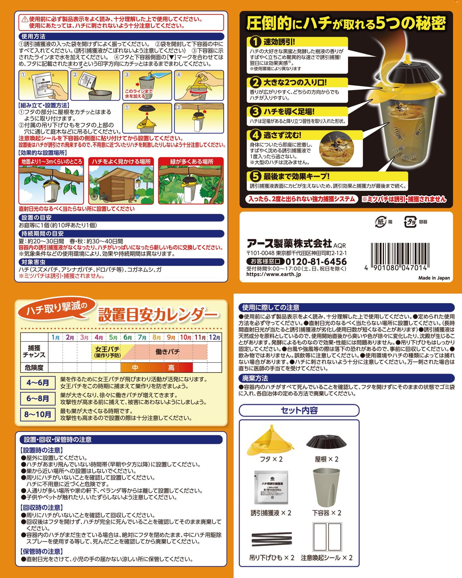 アースガーデン ハチ捕獲器 ハチ取り撃滅 捕獲器タイプ 2個入 ハチ駆除 ハチ対策 ガーデニング 観葉植物 園芸 害虫 虫対策 家庭用 蜂 屋外