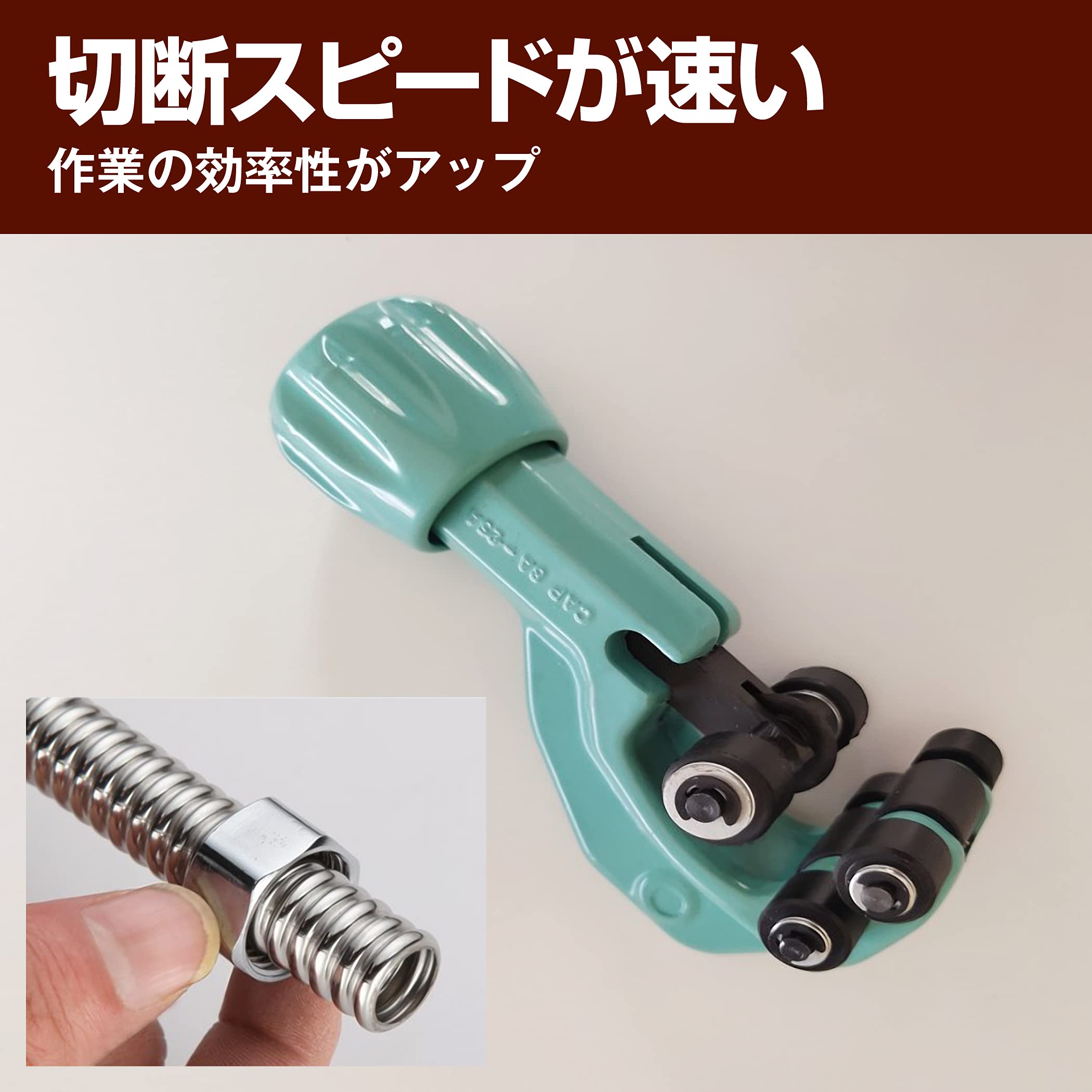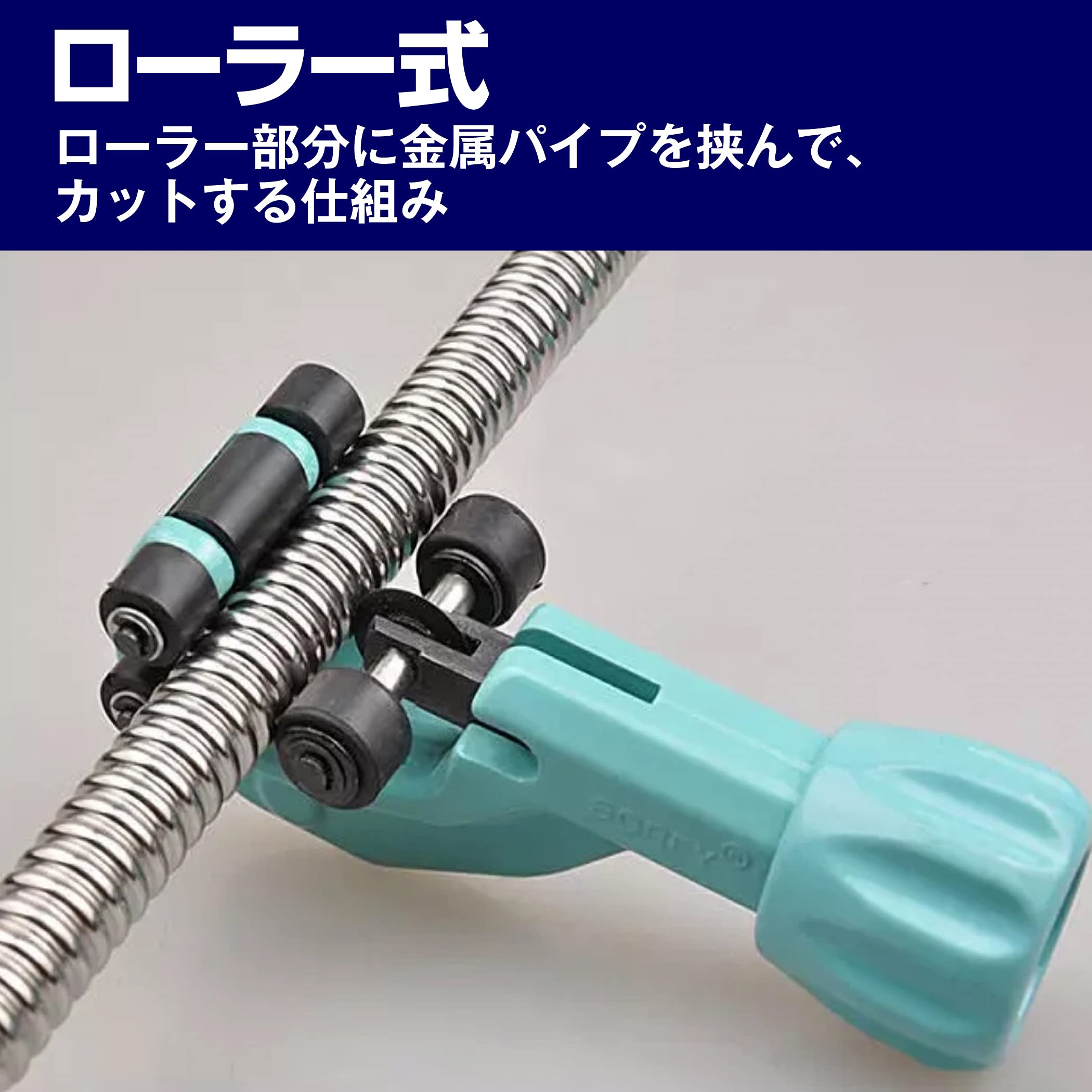 パイプを切断する際に活用できる:ステンレスフレキ管を切断する際に活用できるローラー式パイプカッターです。切断するスピードが速く、効率的に作業したい方にピッタリといえます。
