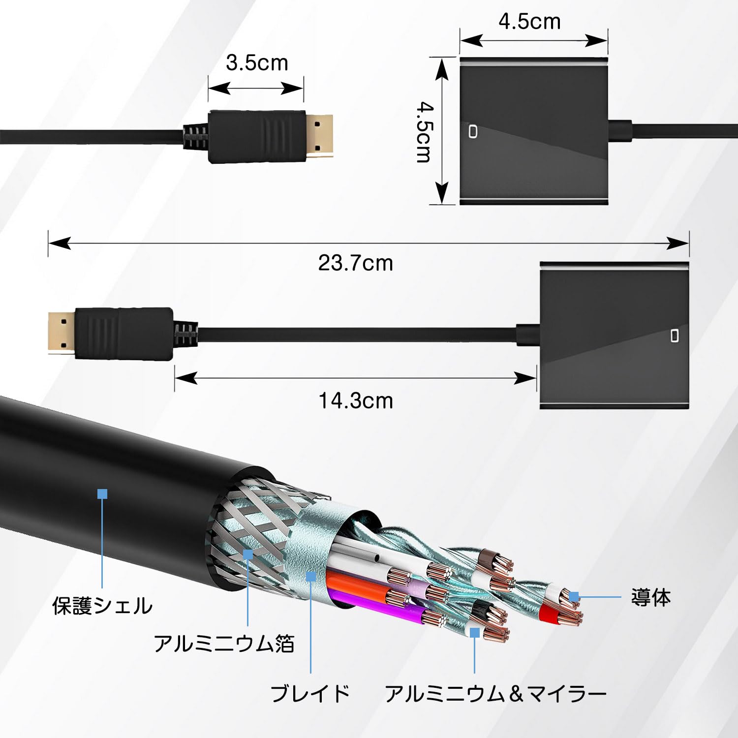 【プラグアンドプレイ】ドライバーをインストールする必要がなく、接続するだけで利用できます。信号をDisplayPortからVGAまで伝送しかない為、双方転送に対応しておりません。