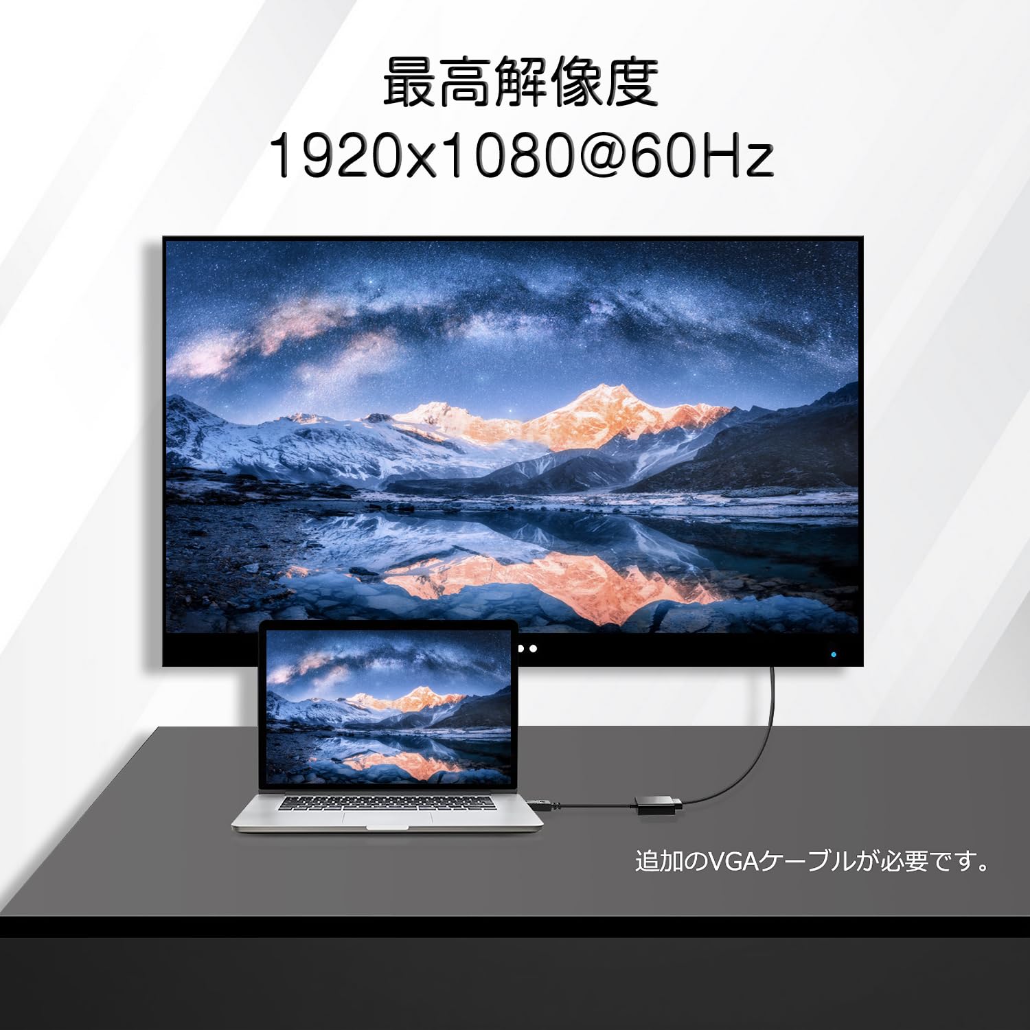 【DP to VGA変換のみ】本製品はDisplayPortからVGAへの変換のみをサポートしており、VGAからDisplayPortへの変換には対応していません。また、双方向の変換はできません。VGA出力のパソコンからディスプレイモニタのDisplayport への入力はできません。音声出力には対応していません。