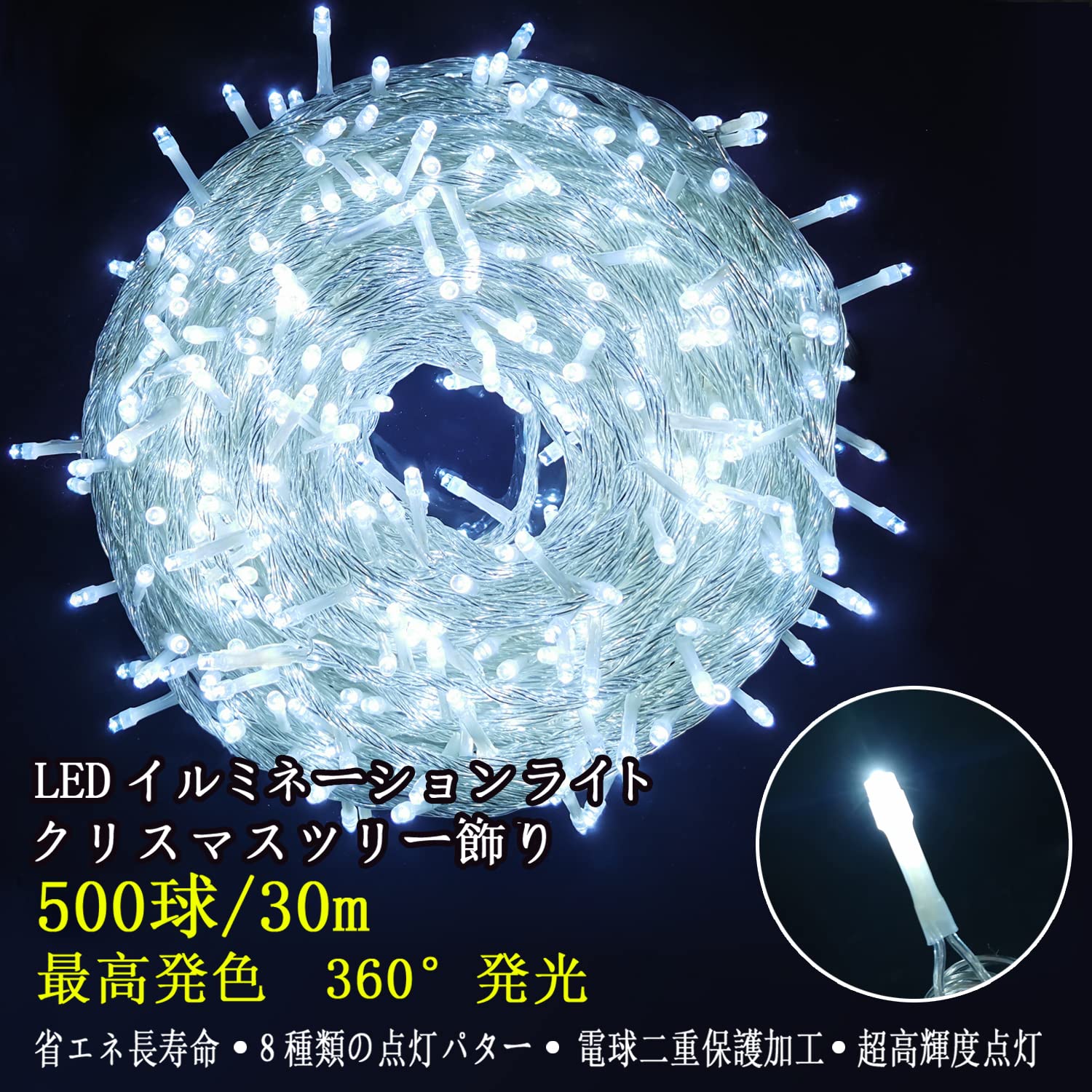 Freesun LEDイルミネーション ライト 500球 30m クリスマス 飾り LED電飾 8パターン 複数連結可 防水 クリスマスツリーライト ホワイトの発光