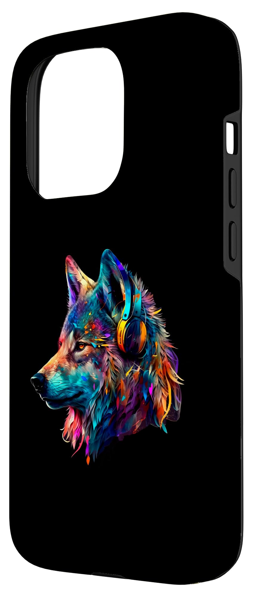ヘッドフォン付きカラフルなオオカミ 音楽グラフィック メンズ レディース キッズ スマホケース iPhone 15 Pro 用