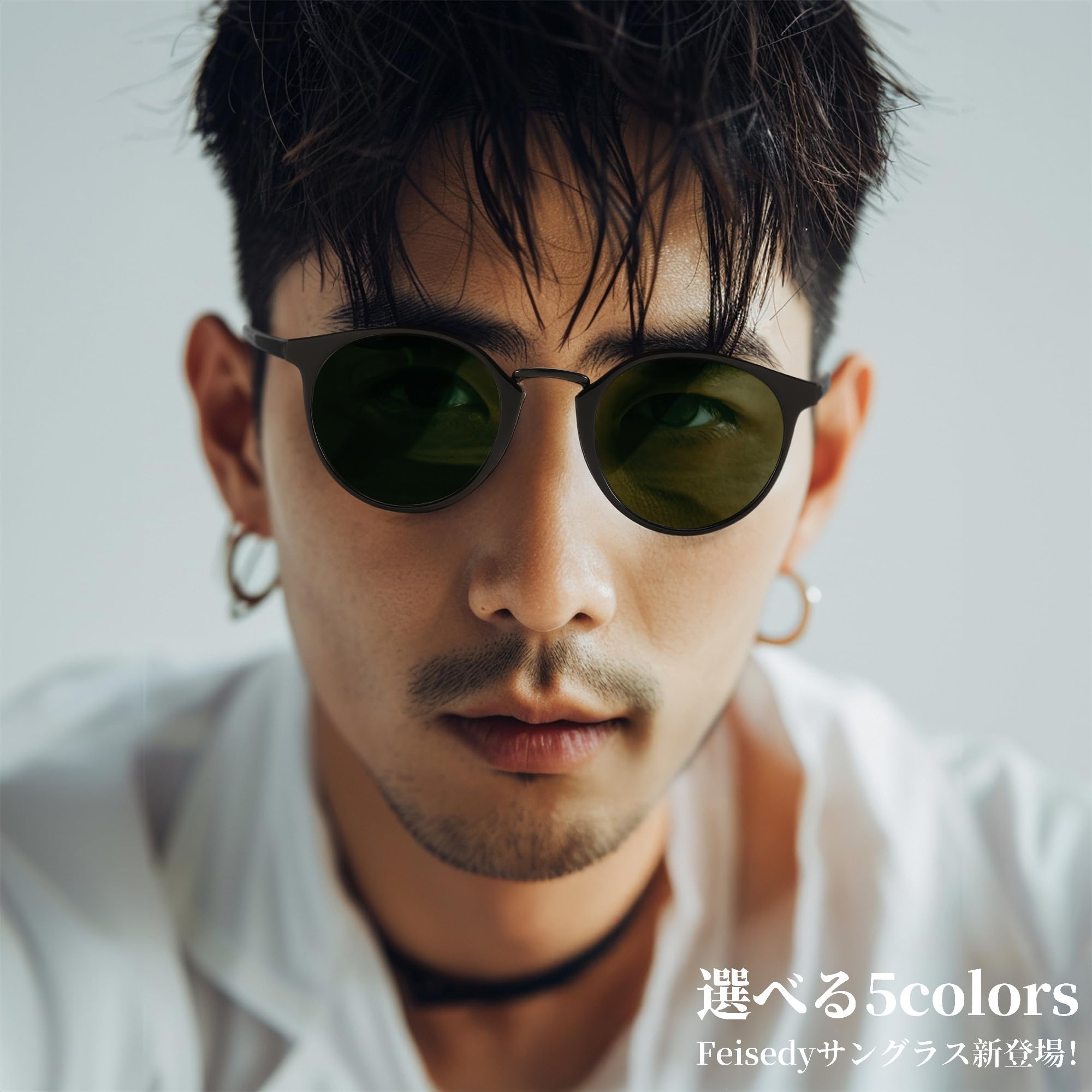 [FEISEDY] サングラス レディース メンズ UV400 紫外線カット 丸型 おしゃれ 軽量 カラーレンズ 運転 通勤 旅行 ファッション ユニセックス 知的 ボストン B1172