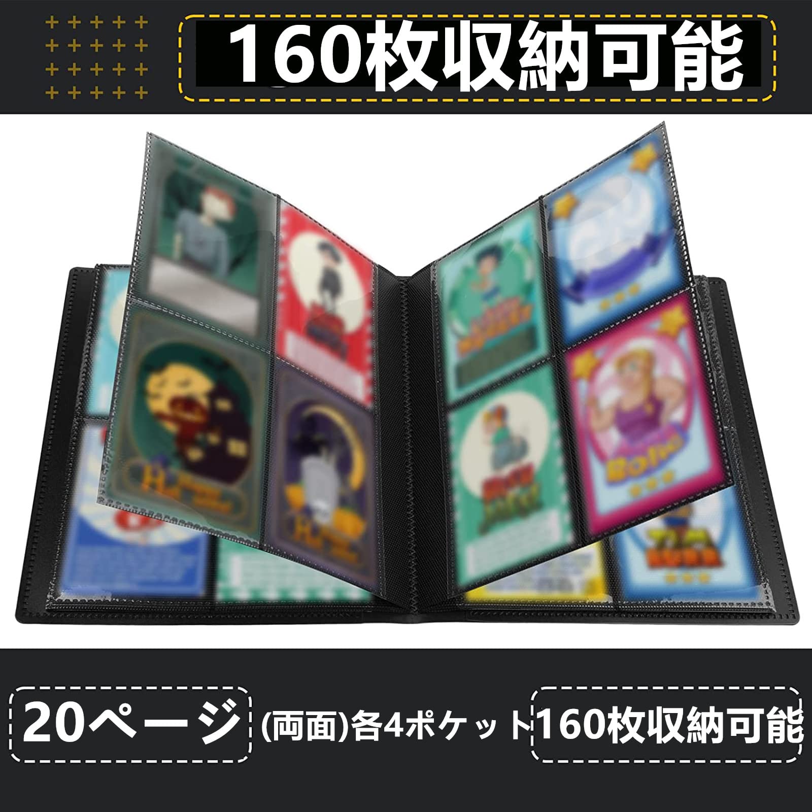 カードファイル カードバインダー 4ポケット 160枚収納 横入れ トレカホルダー バインダーホルダー シールファイル トレーディングカード フォトアルバム ファイル ブック (ブラック)