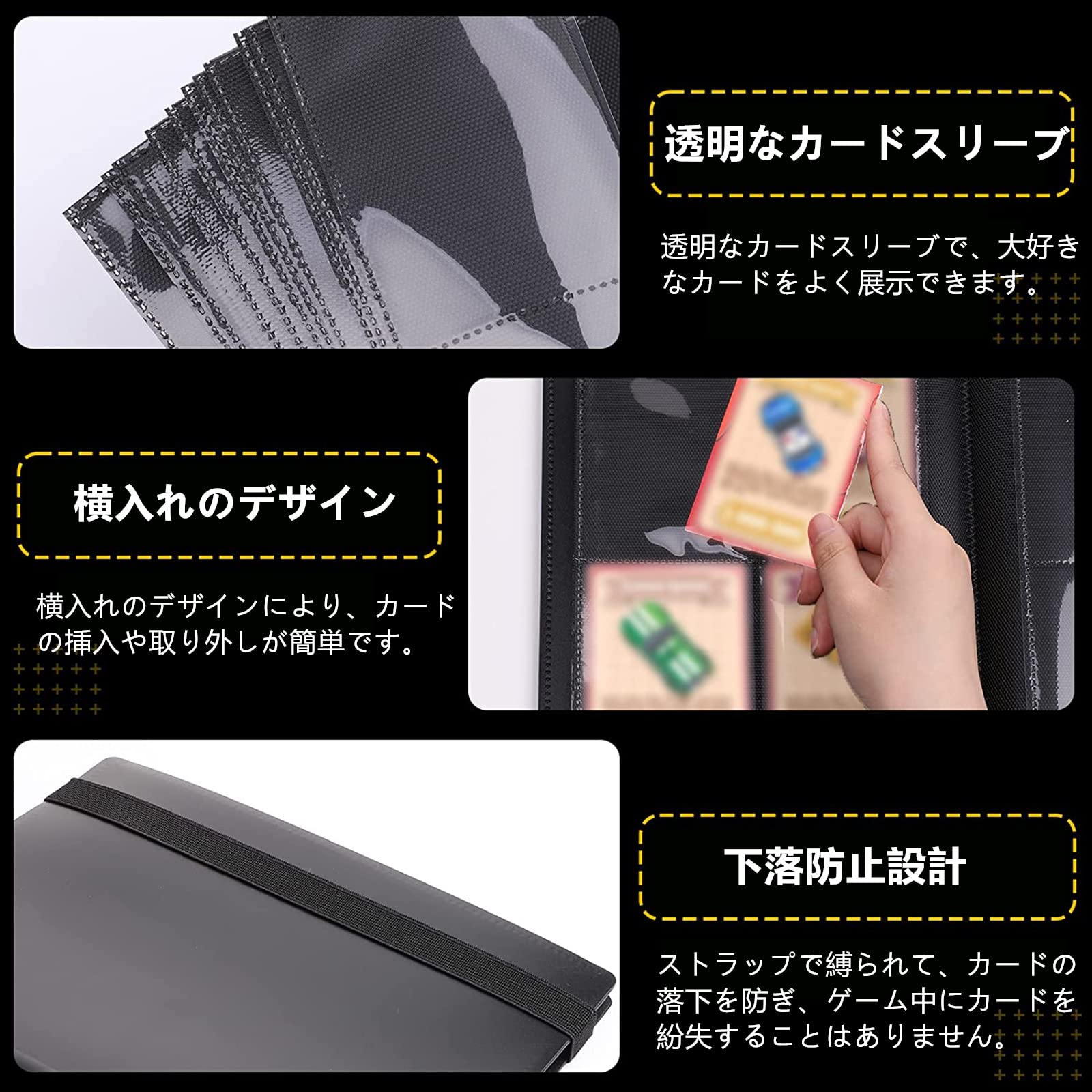 【互換性のある標準カード】ポケモンカード、トレカポケモンカード、サッカーカード、バスケットボールゲームカード、野球カード、スポーツスターカード、攻撃カード、ゲームカード、クーポン、クレジットカード、ミニ写真などの標準サイズのカードの収納に使われています。