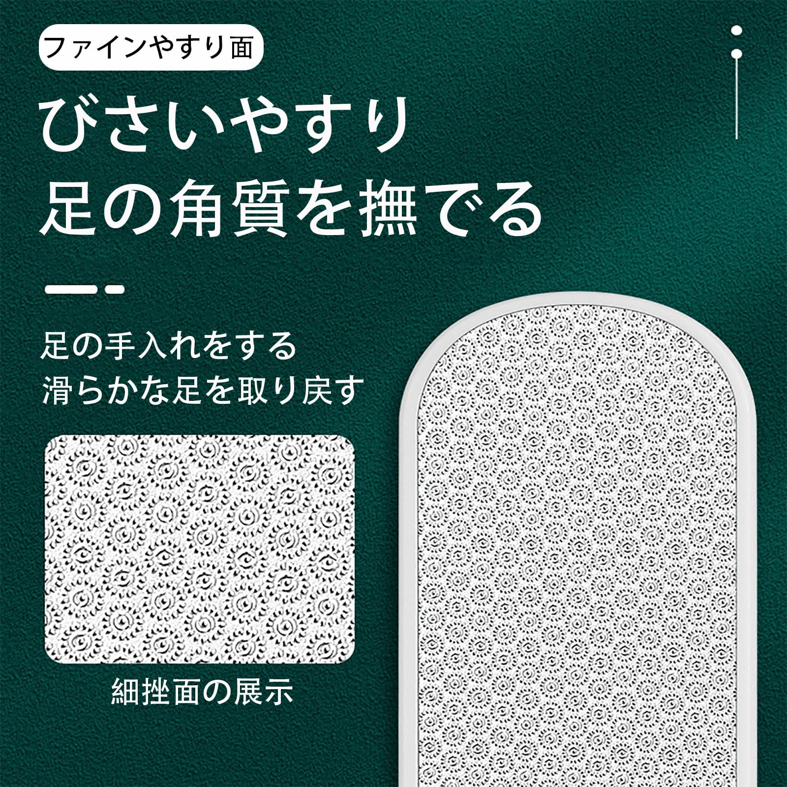 【両面磨き設計】:実用両面(片面太眼、片面細眼)設計、太眼面:厚皮、硬い凧、勤勉、硬い角質化した皮膚を簡単に迅速に除去し、細面:足を軽くマッサージし、足を柔らかく滑らかにする。