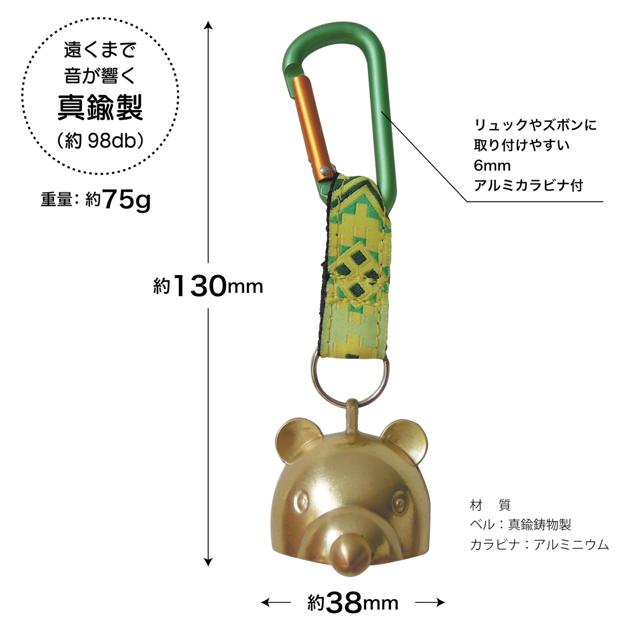 山歩きや登山での危険回避に! 見た目とは裏腹に真ちゅう製で遠くまでよく響きます! 鼻部分が分胴になっており、鼻を外すと鈴として機能します。 材質:ベル/真鍮,カラビナ/アルミ